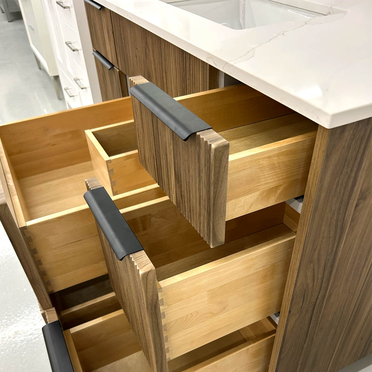 - Solid birch wood drawer boxes