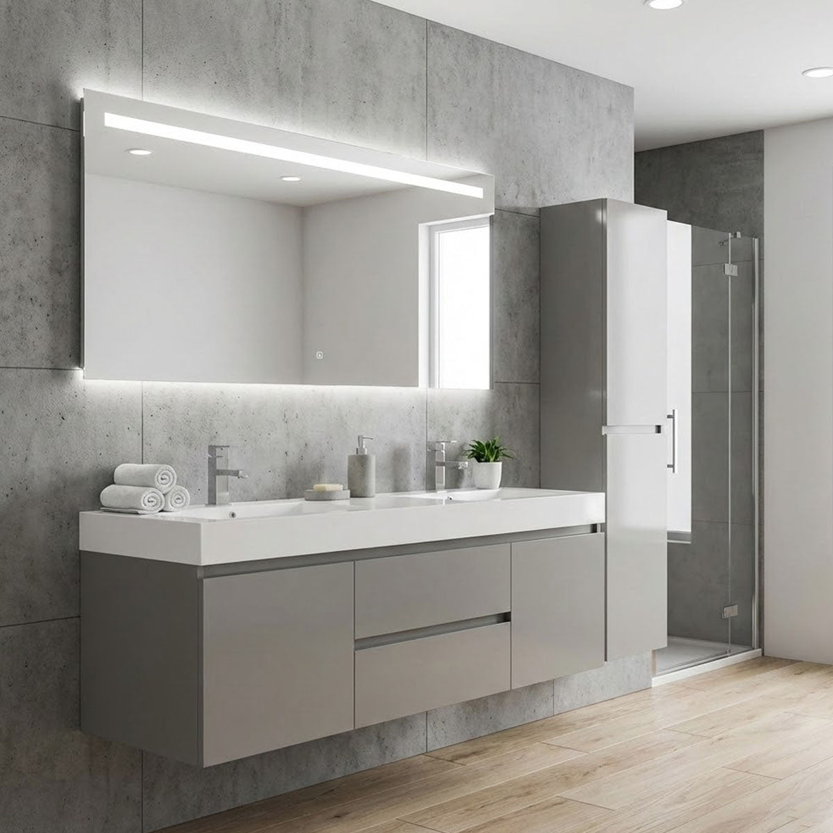 60 inch Damian Chelsea Grey wall mount modern double sink bathroom vanity