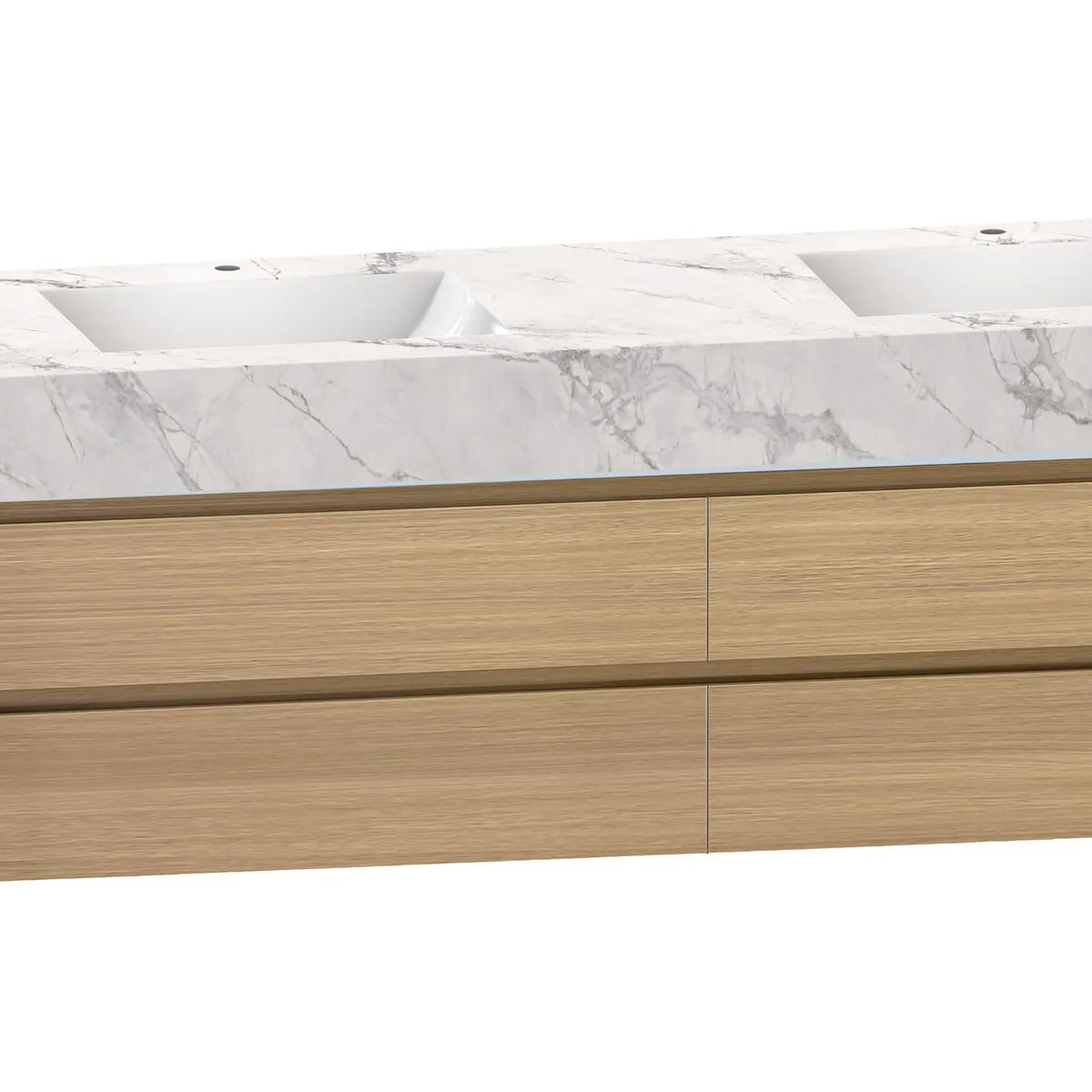 - 6" Sintered stone top with integrated porcelain sinks