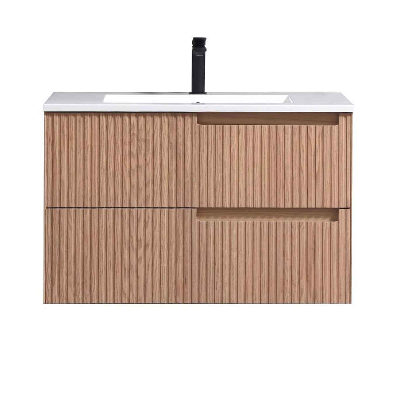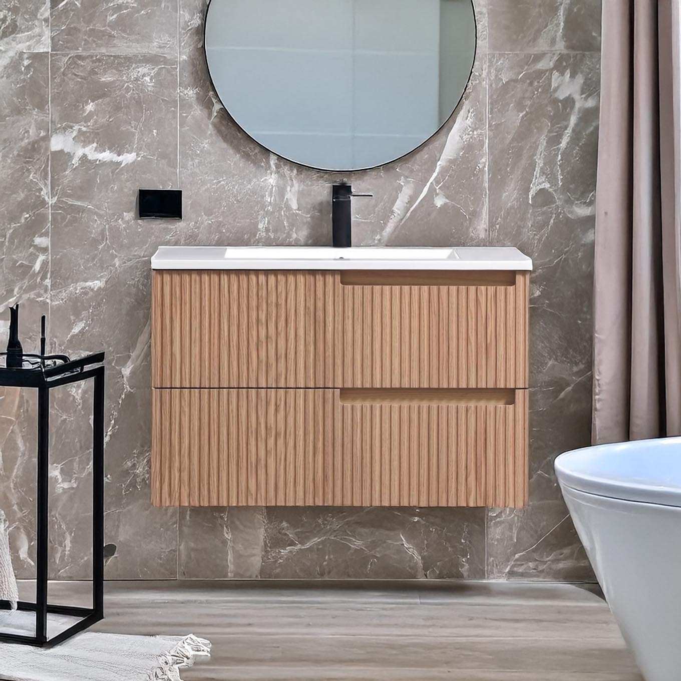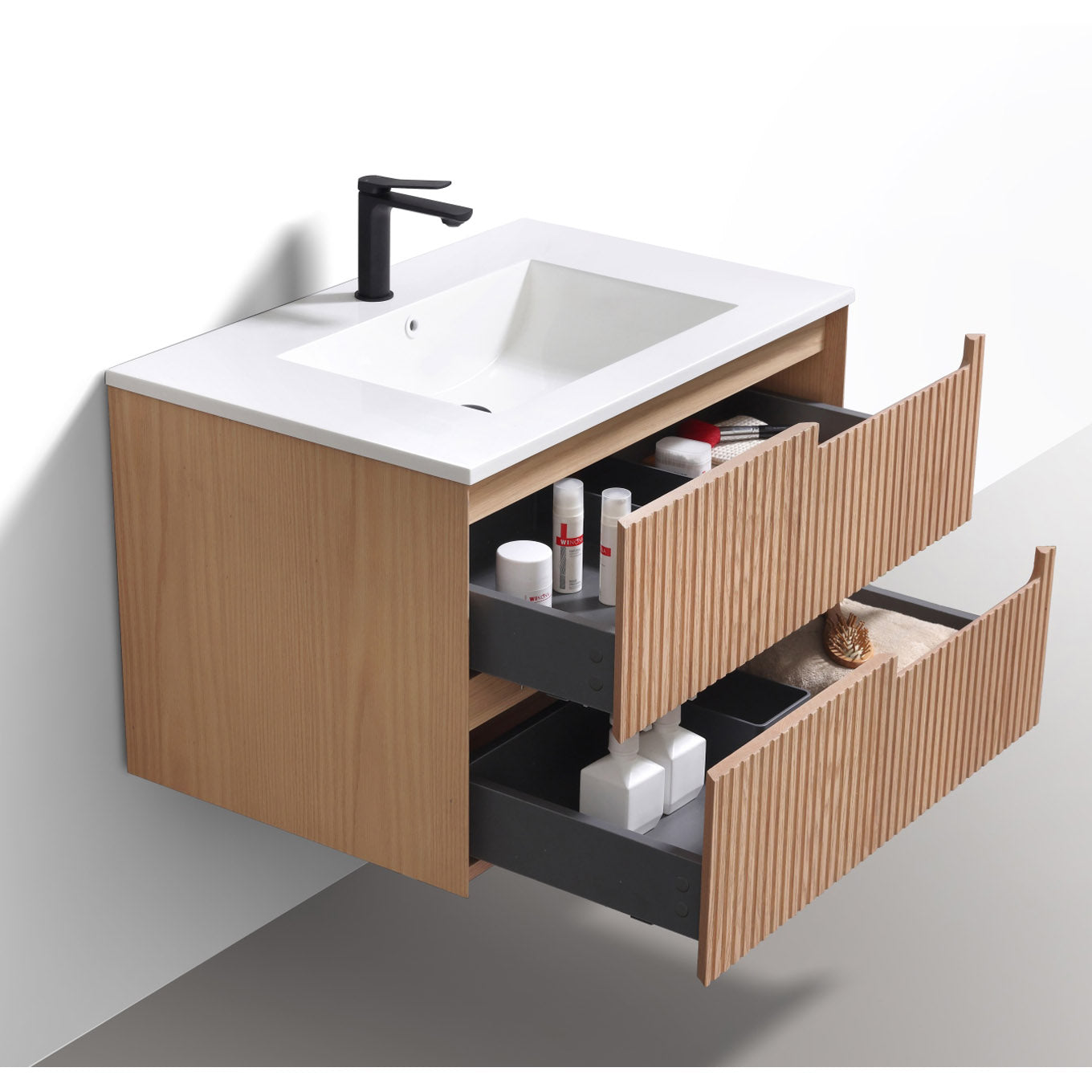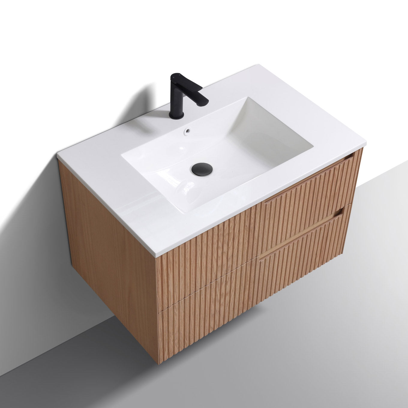 32 inch Benson Wall mount modern bathroom vanity in Distressed American Oak finish